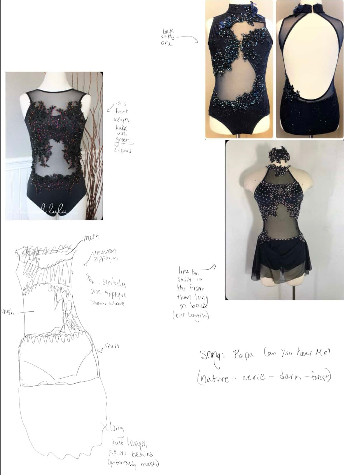 Black costume with green rhinestones deposit