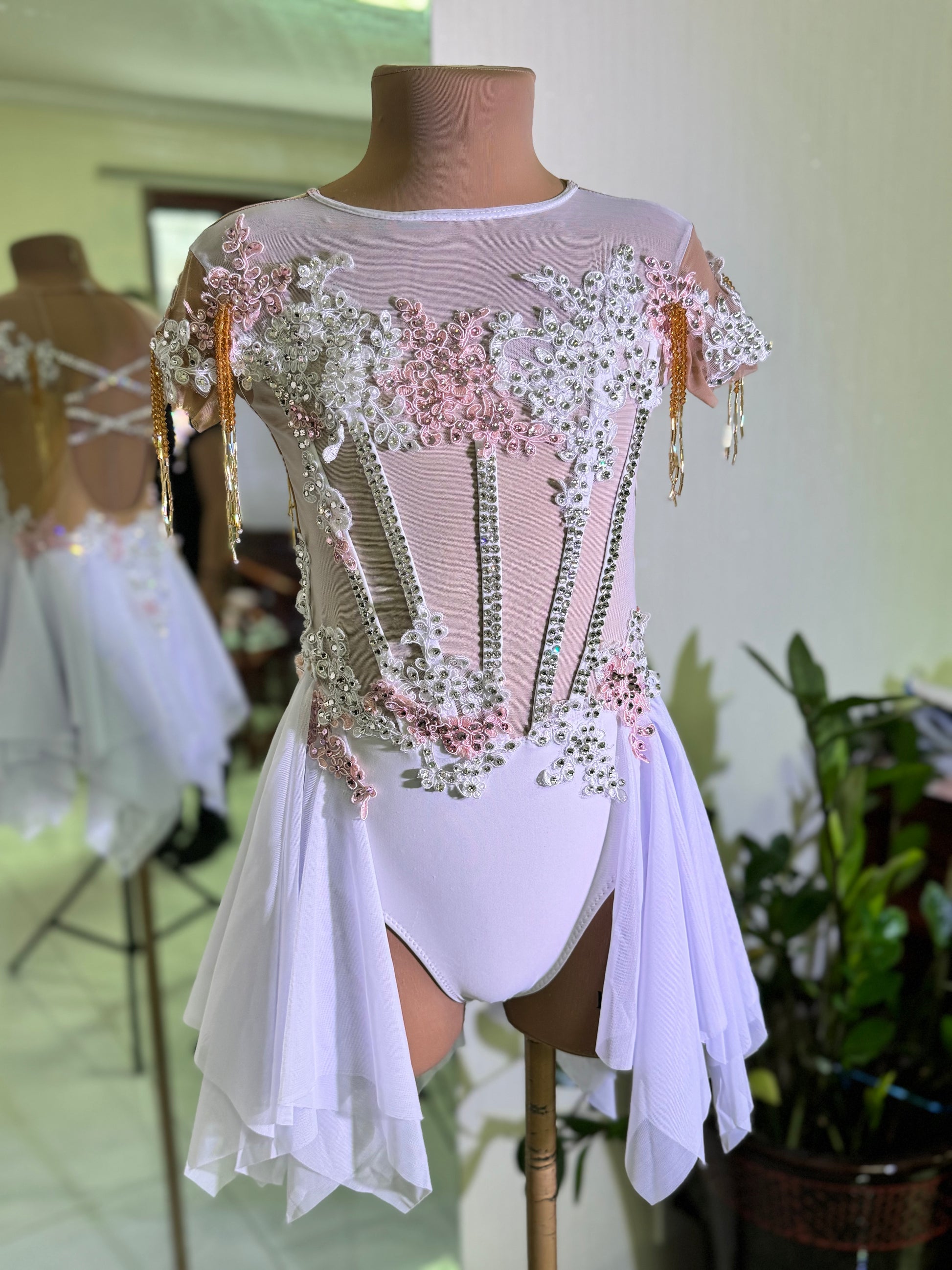 Please provide your dancer’s measurements (bust, under bust, waist, hips, and girth) in the order form at checkout.